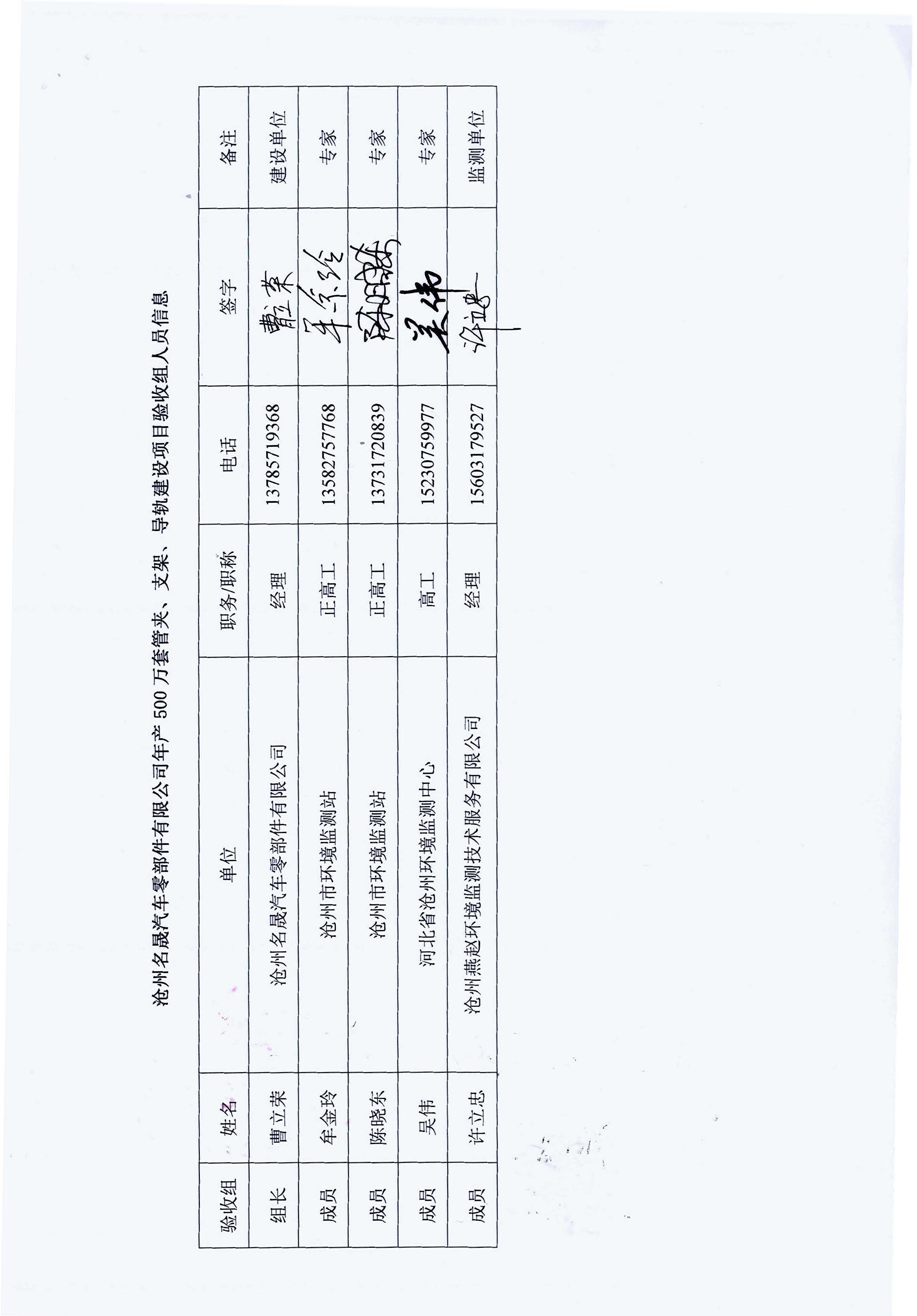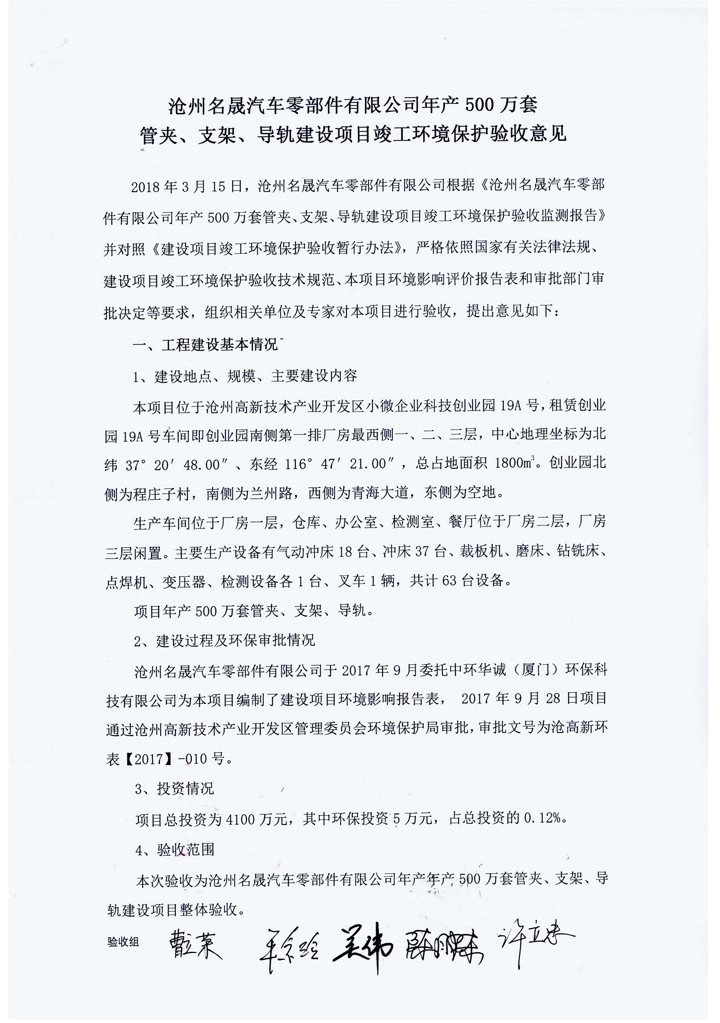 沧州名晟汽车零部件有限公司环境保护验收报告