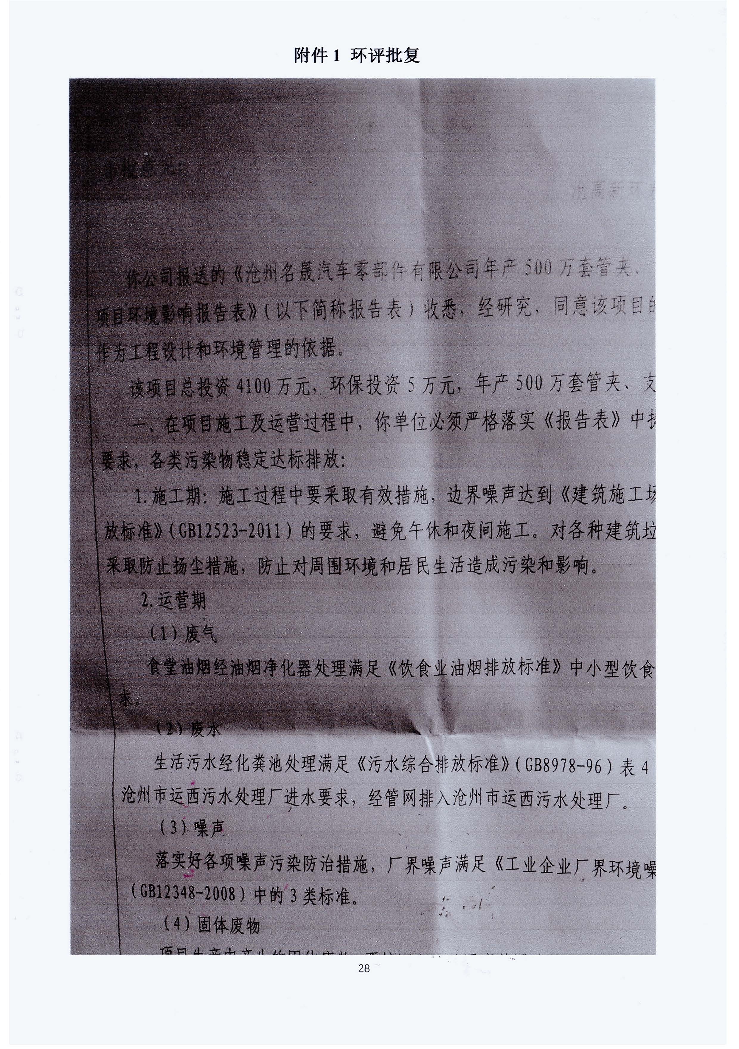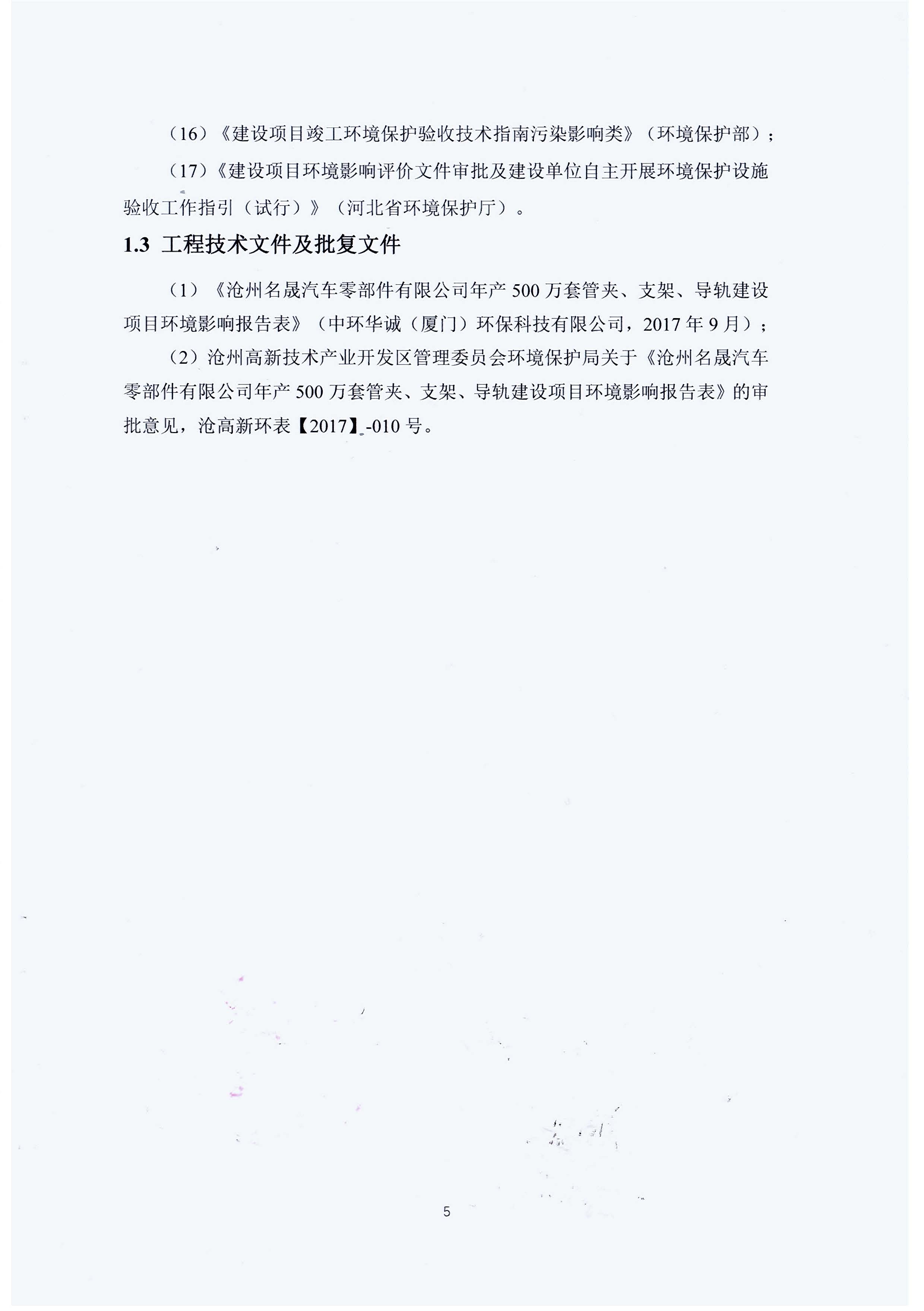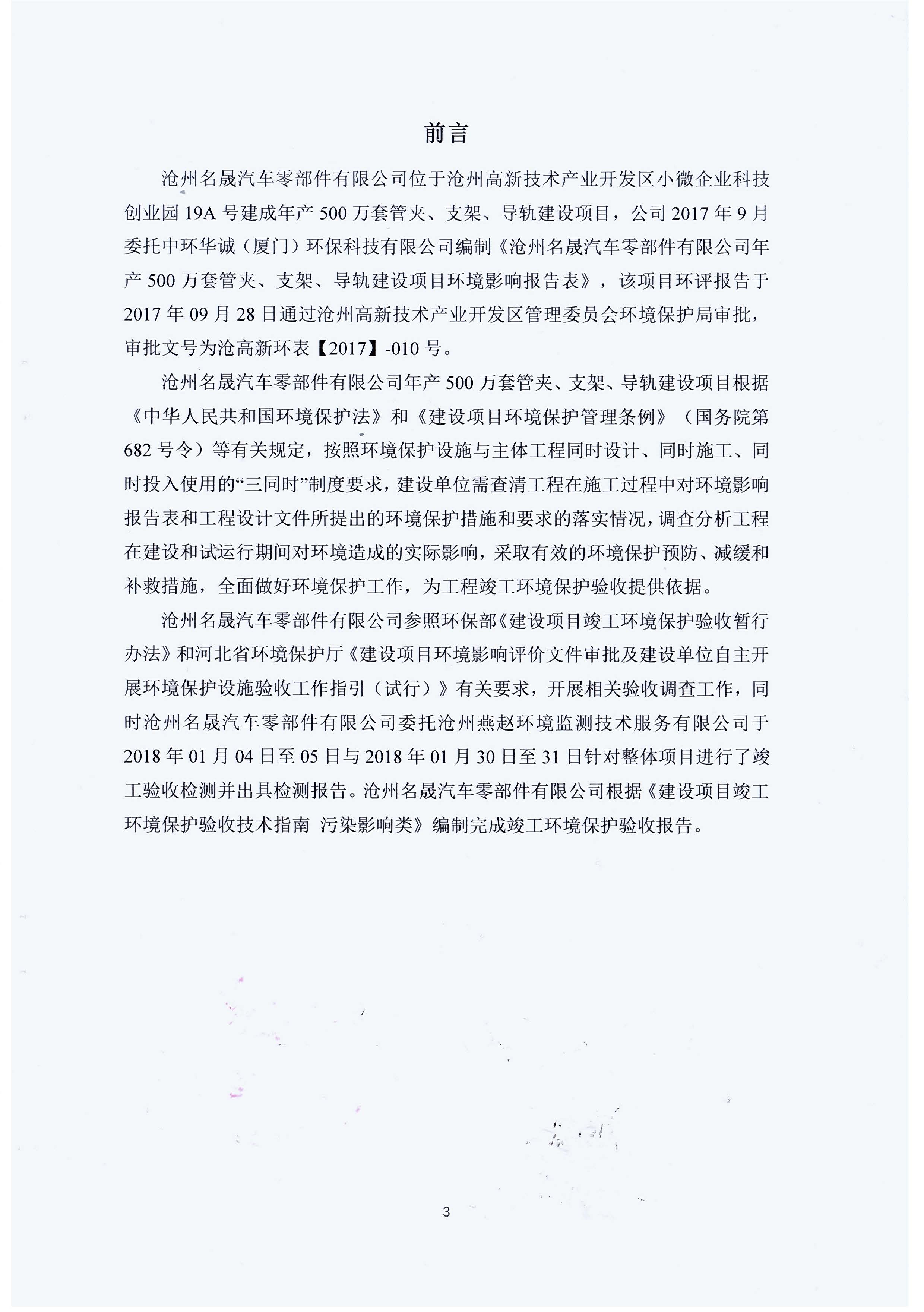 沧州名晟汽车零部件有限公司环境保护验收报告