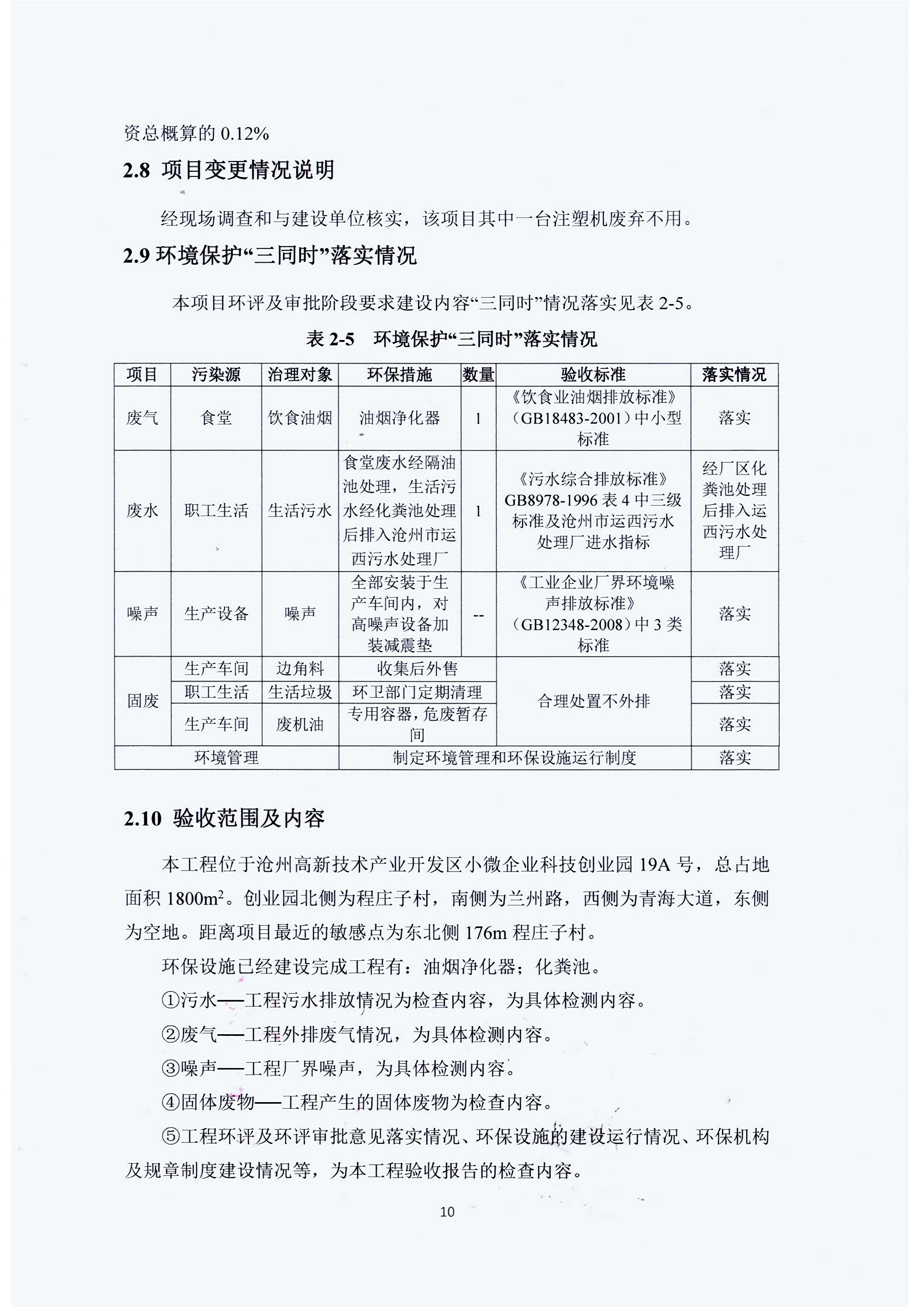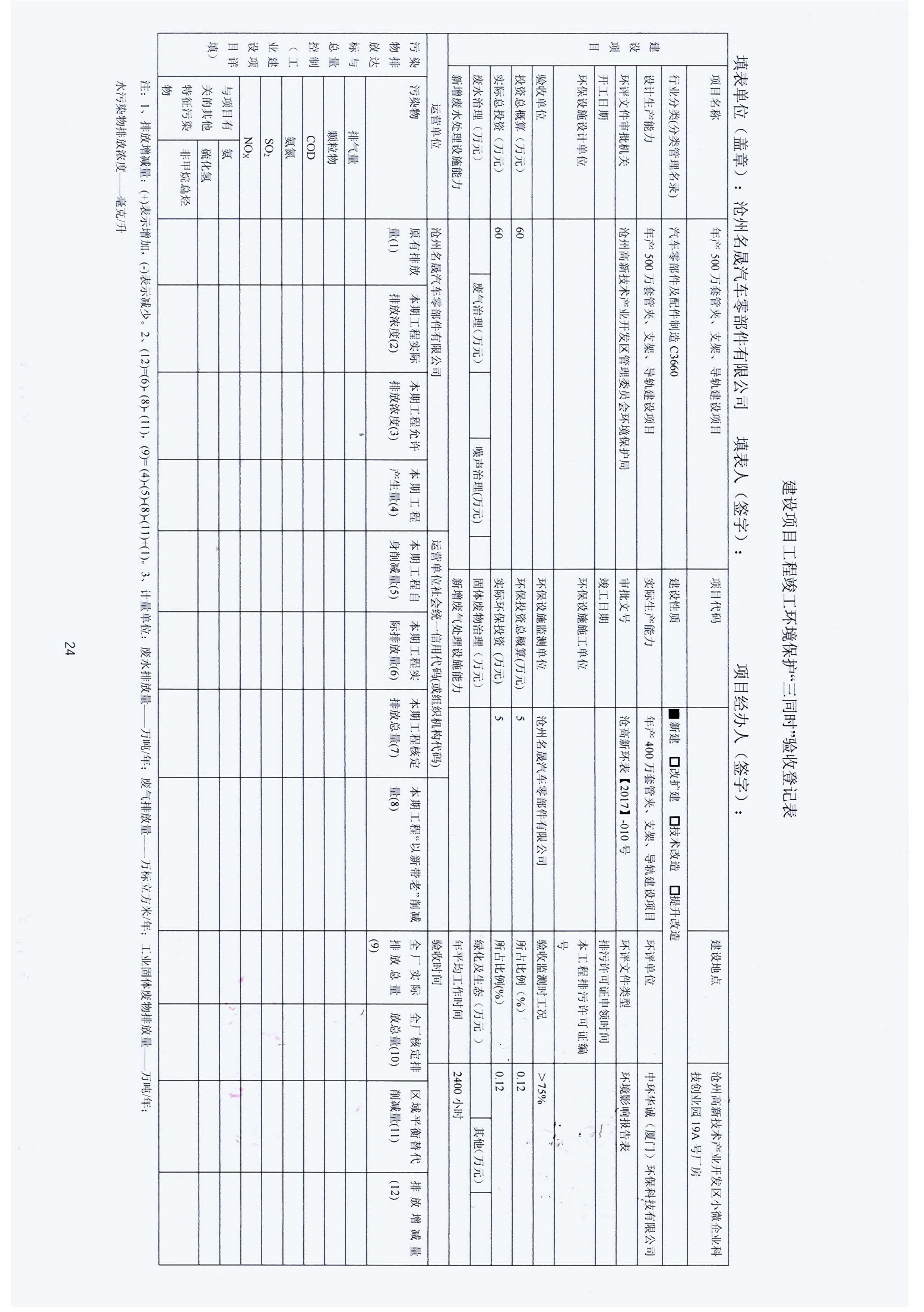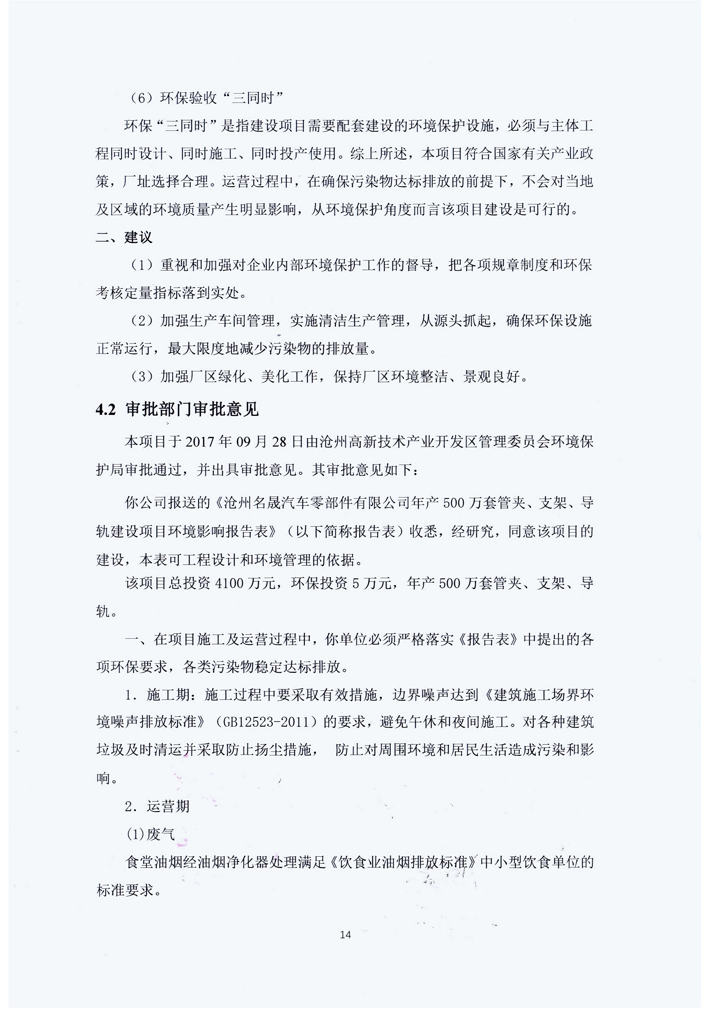沧州名晟汽车零部件有限公司环境保护验收报告
